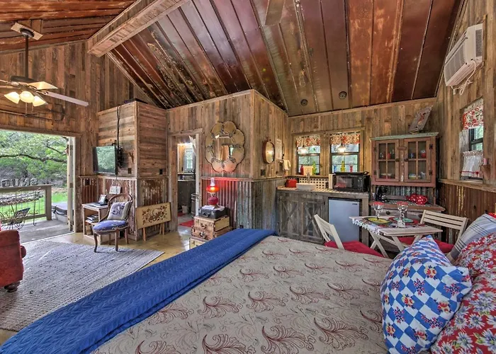 Descubre el encanto del Snuggle Inn Wimberley Cabin With Fire Pit and Deck, un acogedor retiro que combina la nostalgia de los años 40 con las comodidades modernas. Este refugio ofrece un ambiente relaxante, ideal para escapadas románticas o para desconectar con amigos. Con acceso a WiFi gratuito y una cocina completamente equipada, disfrutar de estancias largas o cortas nunca ha sido tan sencillo.